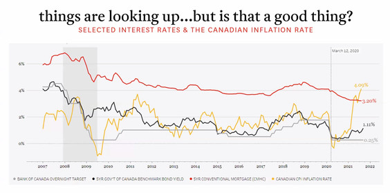 Below are screenshots of our employment growth rate, Vancouver's job recovery, BC job loss archetype, BC's strong in-migration, unemployment down to 6.2%, the depleted housing supply, presale activity, inflation up to 4% and mortgage rates trend.